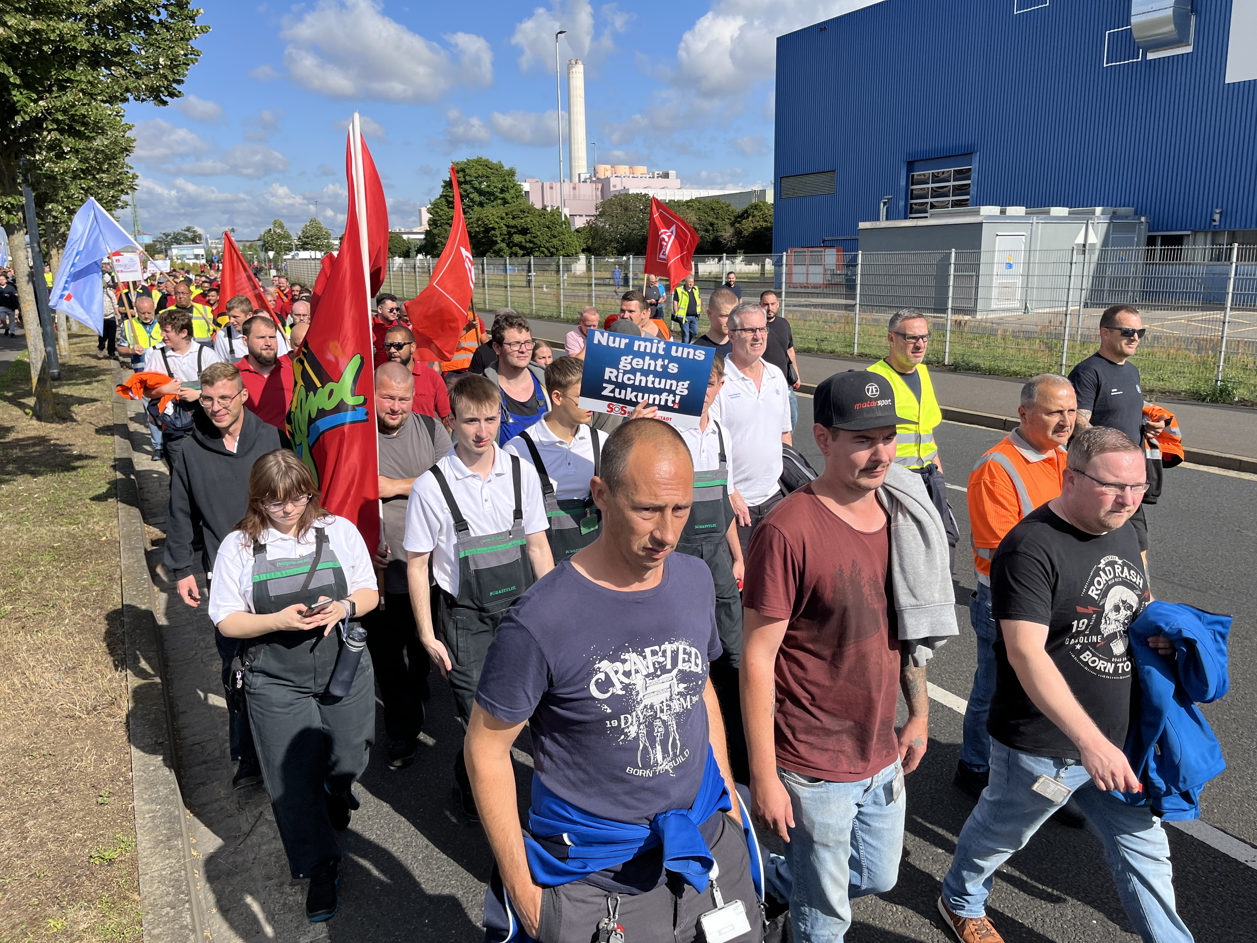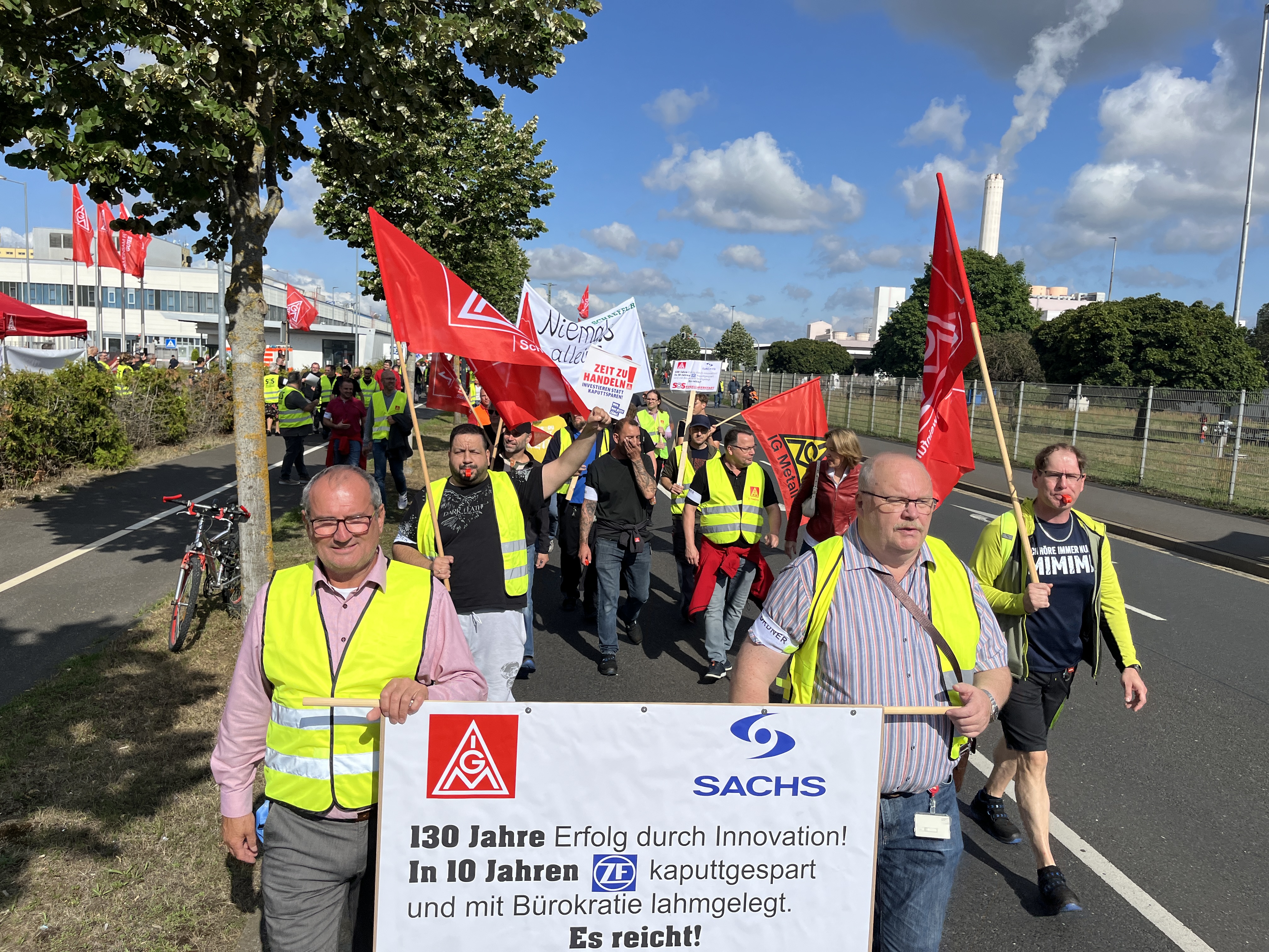Was für ein starkes Zeichen des Widerstands: 6500 ZF-Beschäftigte in Schweinfurt, Auerbach, Thyrnau, Nürnberg und Bayreuth haben beim bundesweiten ZF-Aktionstag am 29. Juli 2025 für ihre Zukunft demonstriert. Das Unternehmen droht der Division E mit Verlagerungen, Stellenabbau und Ausgliederung. Und der Protest zeigte Wirkung: Der Aufsichtsrat hat in seiner Sitzung anders als geplant keine Entscheidung gegen die Zukunft der Division E getroffen. Doch die Kahlschlag-Pläne sind keineswegs vom Tisch. Wir haben nun Zeit gewonnen, bis Ende September einen gemeinsamen Weg mit dem Unternehmen für die Zukunft der Division E zu finden.