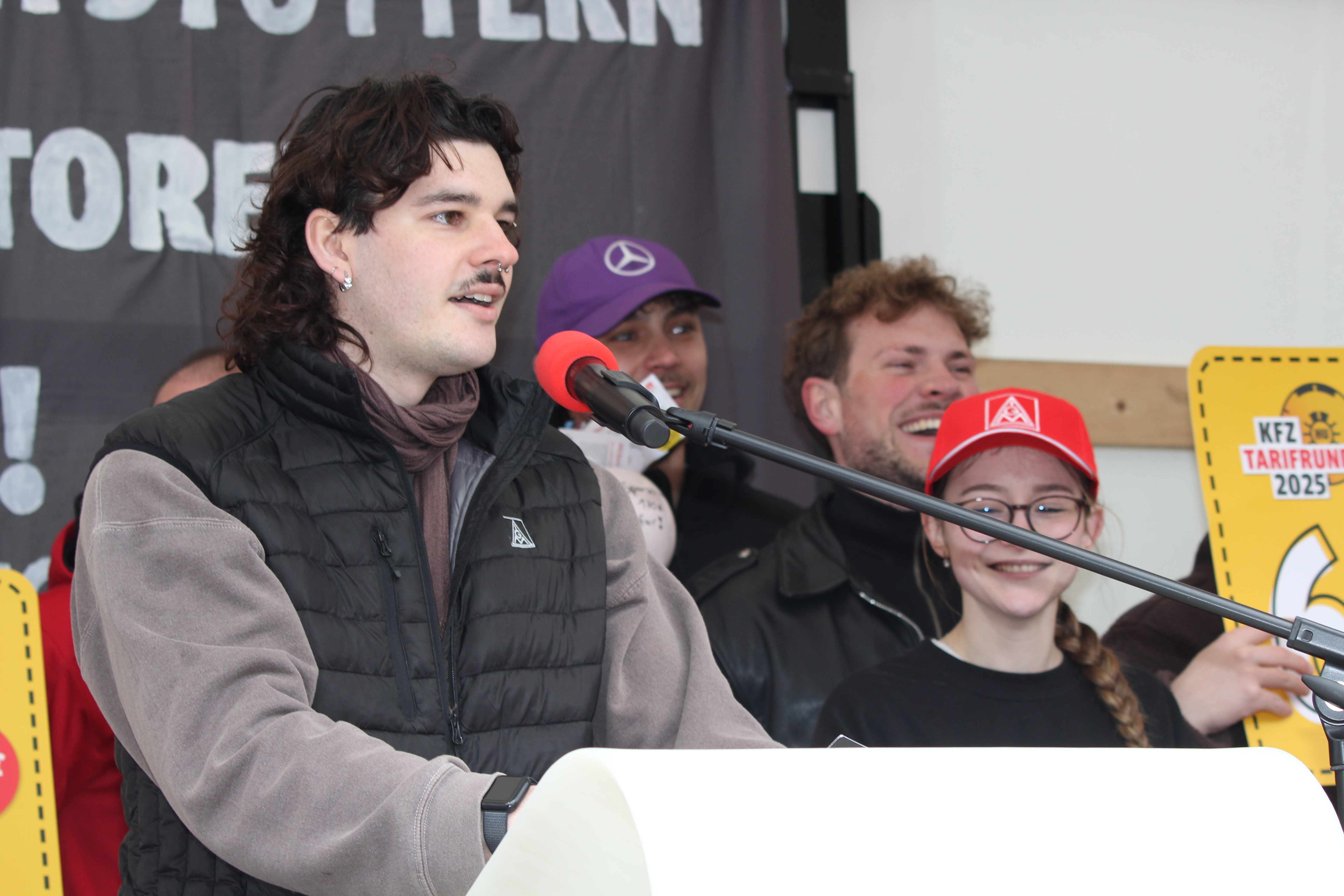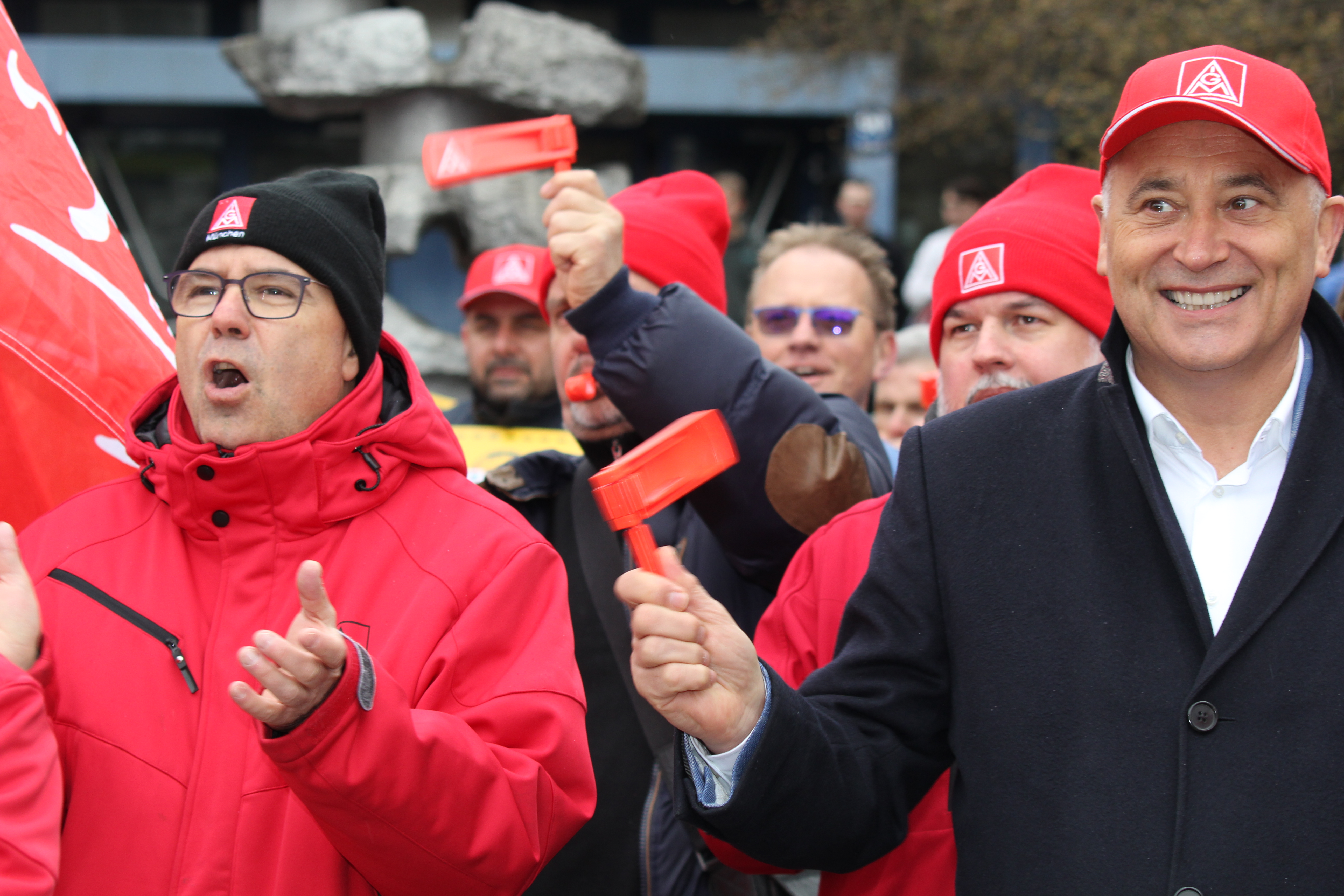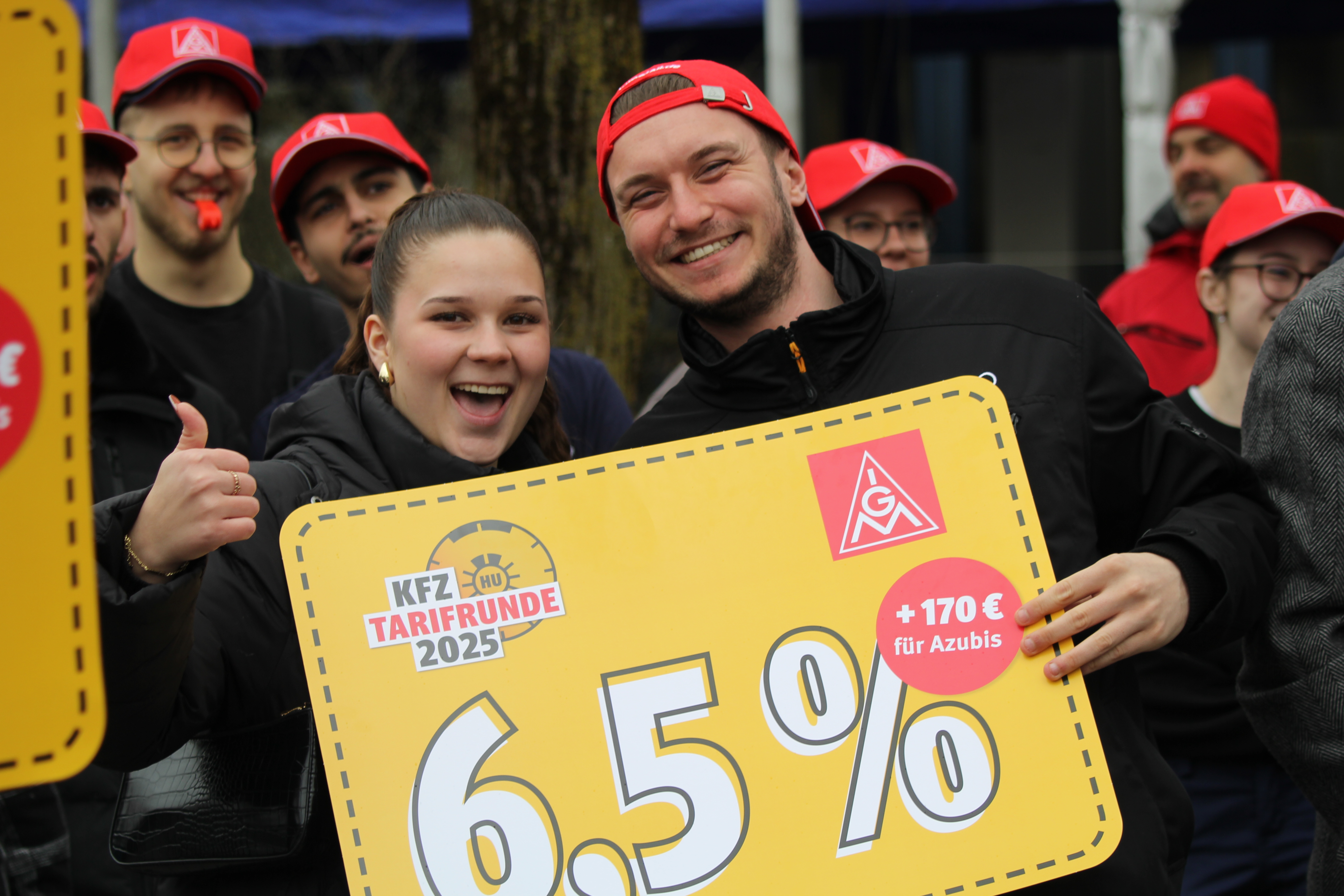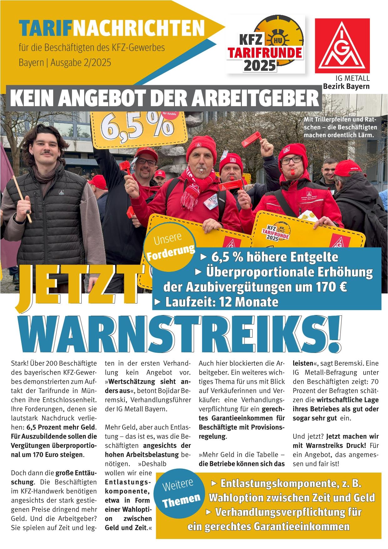 Über 200 Beschäftigte des KFZ-Handwerks haben unmittelbar vor der ersten Tarifverhandlung vor dem Verhandlungslokal für höhere Entgelte und mehr Entlastung demonstriert. Beteiligt haben sich Beschäftigte aus allen großen Münchner Autohäusern und darüber hinaus.