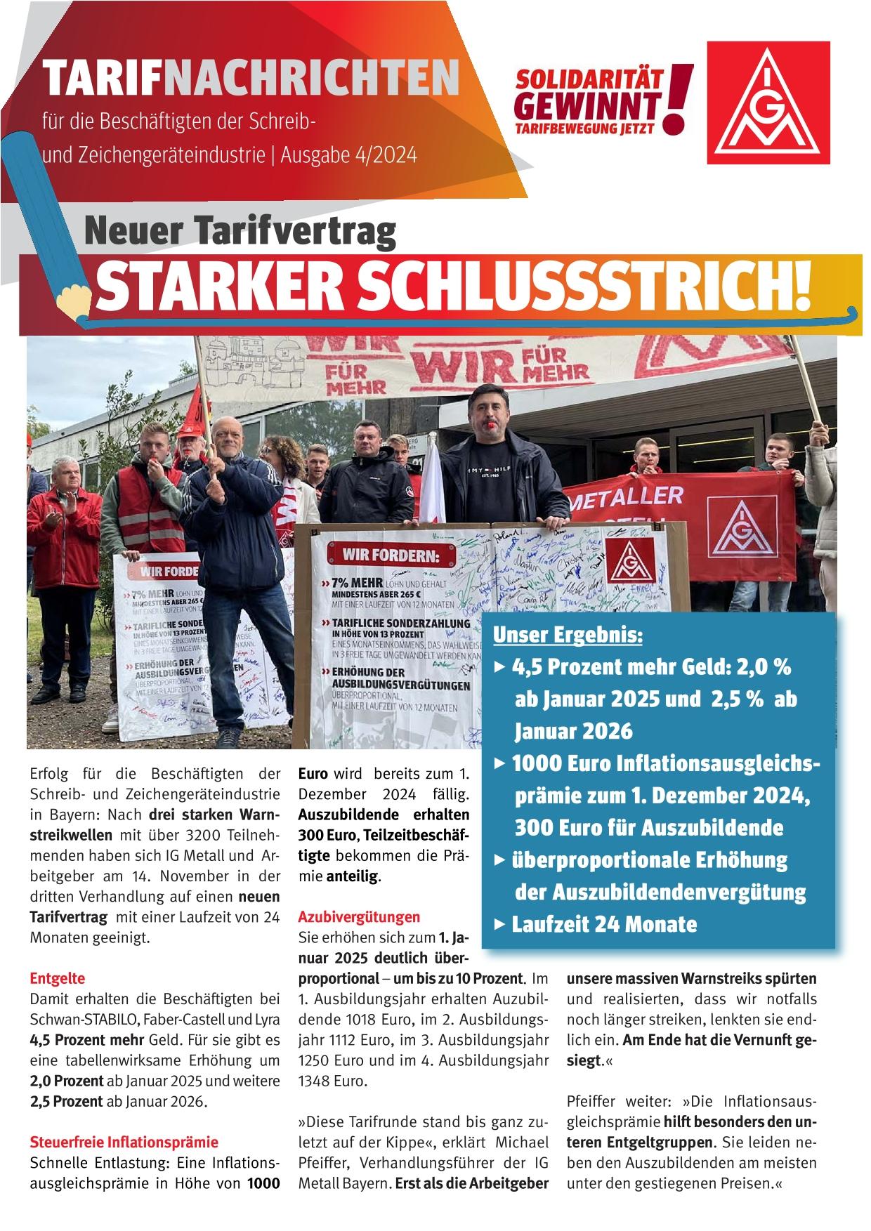 4,5 Prozent mehr Geld in zwei Stufen und 1000 Euro Inflationsausgleichsprämie. Überproportionale Erhöhung für Auszubildende. IG Metall-Verhandlungsführer Pfeiffer: „Erst mit unseren intensiven Warnstreiks haben wir die Arbeitgeberseite in Bewegung gebracht.“