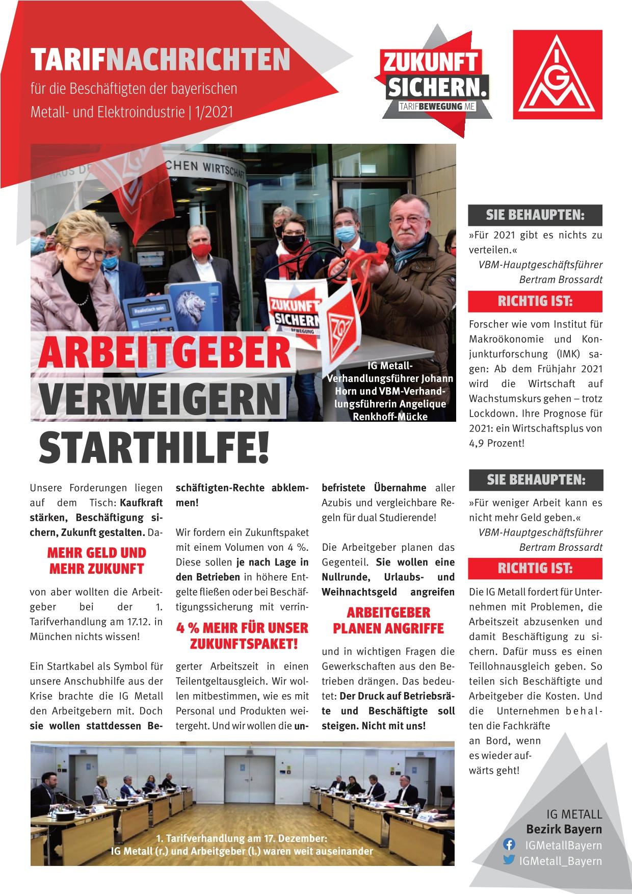 Die IG Metall Bayern ist heute mit den Zielen Kaufkraft stärken, Beschäftigung sichern und Zukunft gestalten in die erste Tarifverhandlung für die Beschäftigten der bayerischen Metall- und Elektroindustrie gestartet.