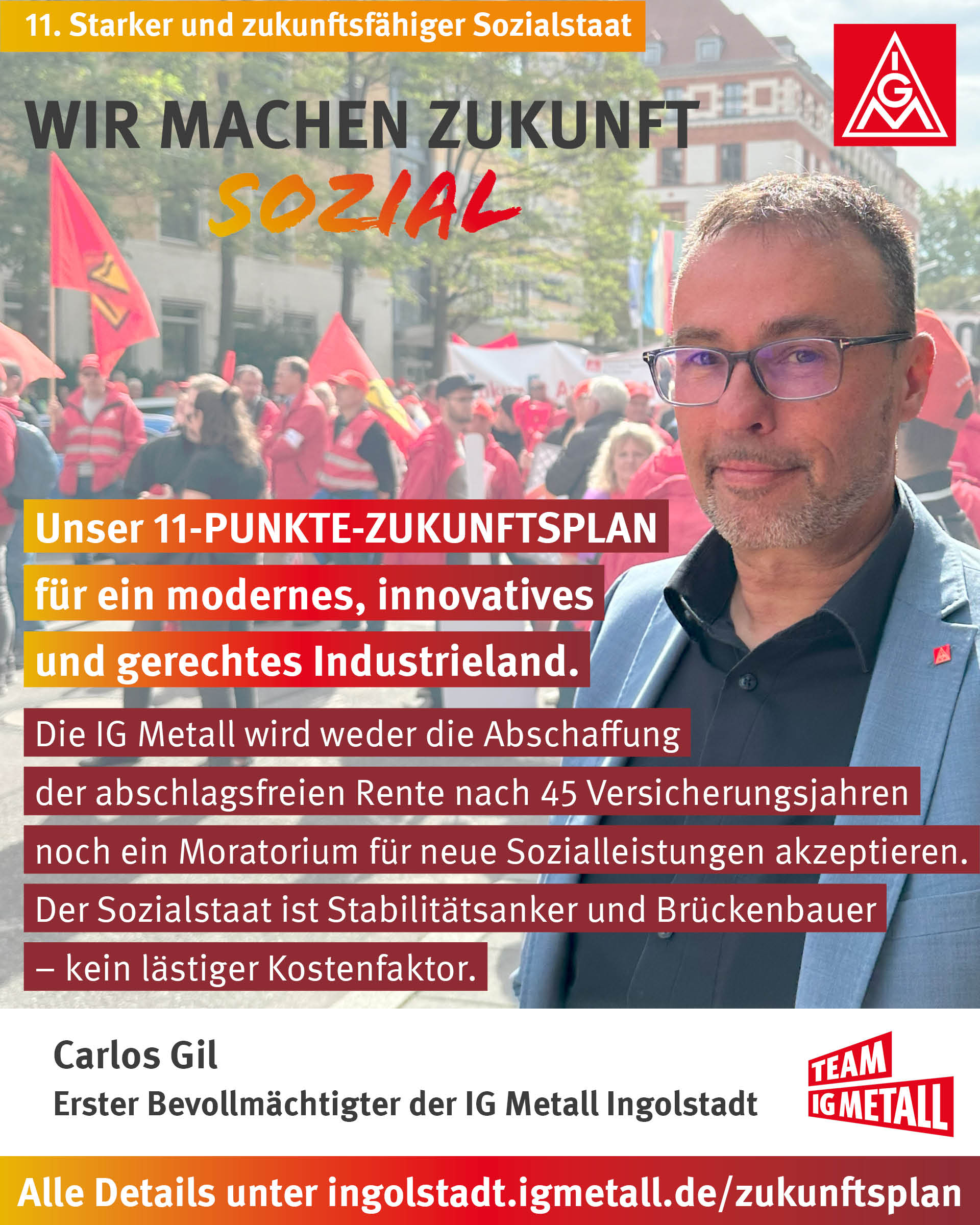 Die IG Metall wird weder die Abschaffung der abschlagsfreien Rente nach 45 Versicherungsjahren noch ein Moratorium für neue Sozialleistungen akzeptieren. Der Sozialstaat ist Stabilitätsanker und Brückenbauer - kein lästiger Kostenfaktor.
