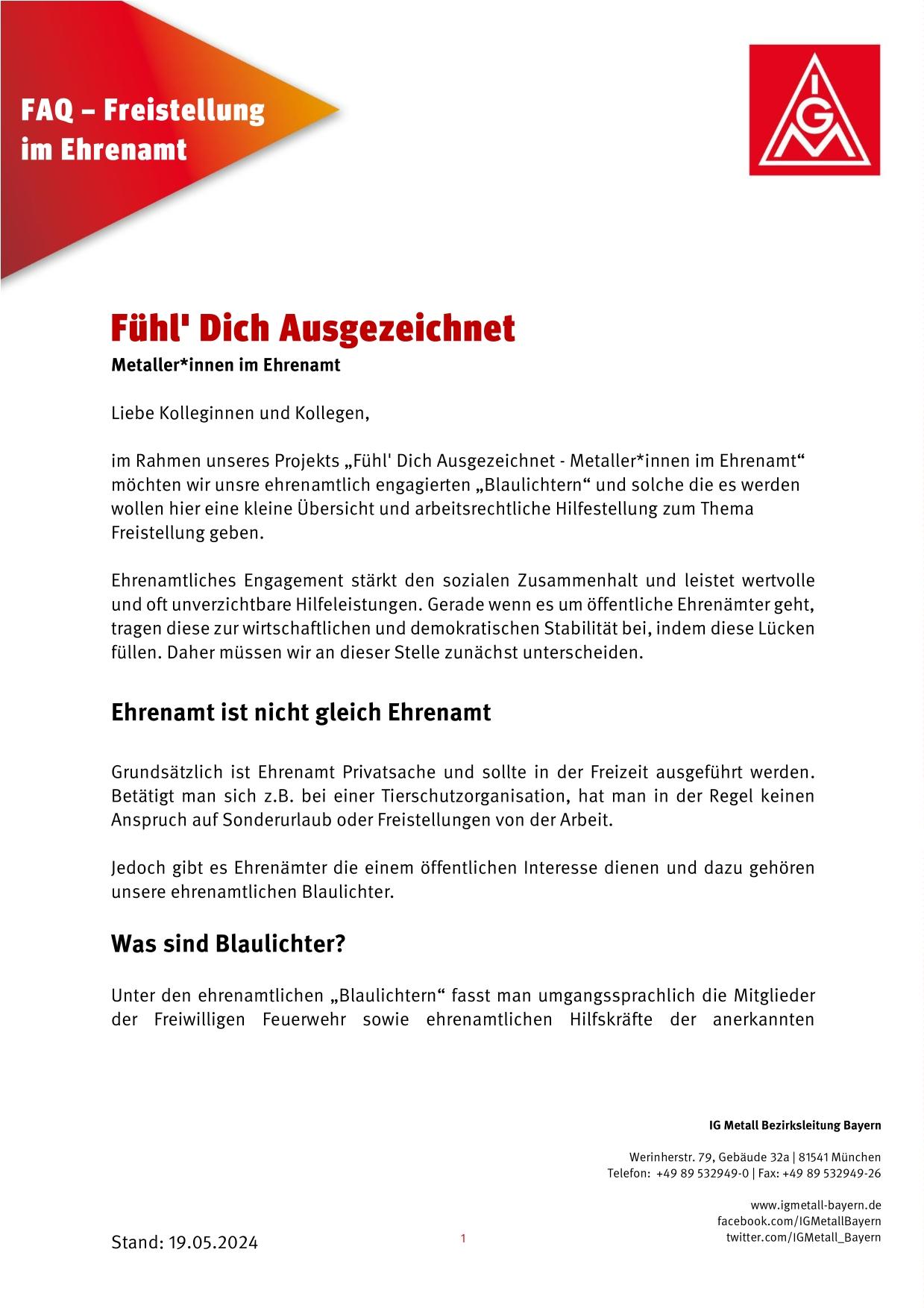 Art. 17 des Bayerischen Katastrophenschutzgesetzes regelt für Mitglieder der Freiwilligen Feuerwehr bzw. ehrenamtliche Rettungskräfte die Freistellung und den Erstattungsanspruch der Arbeitgeber weitestgehend synonym.